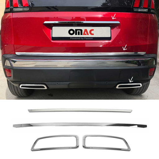 Kit garniture de hayon coffre et d'échappement pour Peugeot 3008 2016-2024 inox