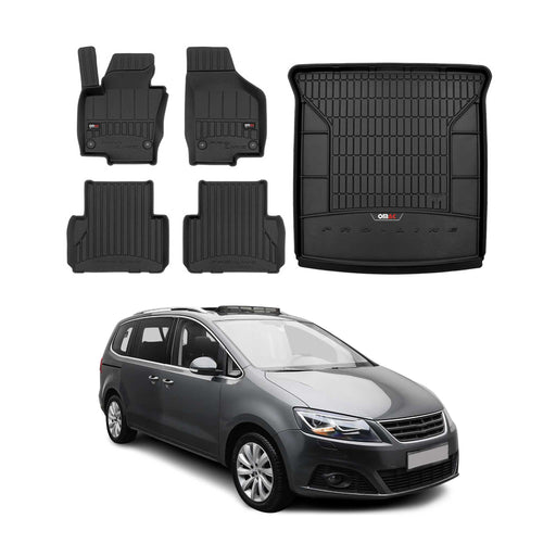 Kit Tapis de Sol et Coffre pour Ford Galaxy 2006-2015 en Caoutchouc Noir