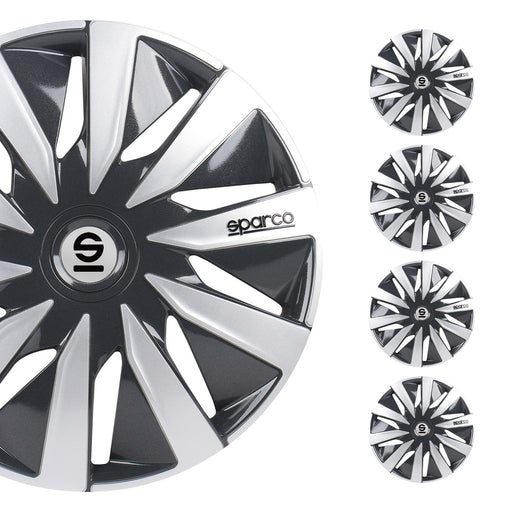 SPARCO Jeu Enjoliveurs de Roues 15 Pouces Noir Gris en ABS 4 piéces