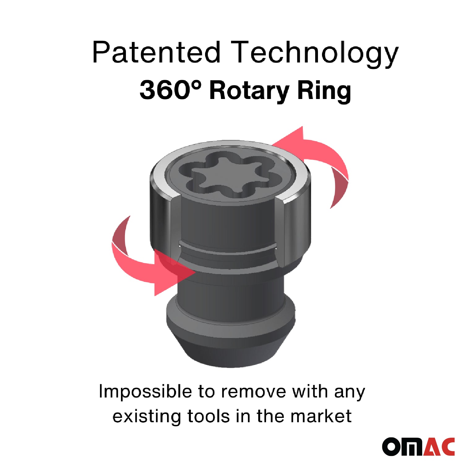 Technologie Swivel-Head : conception unique avec bague rotative à 360° empêchant tout retrait non autorisé.