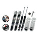 Charge maximale supportée par les essieux: Essieu avant 1020 Kg - Essieu arriére 1025 Kg Plage de réglage: avant: 25-60 mm Arriére: 20-40 mm Kit suspension combiné fileté Homologé et doté d’un système de réglage compression / détente à 9 positions de 1 la plus ferme à 9 la plus souple. Ressorts enroulés à froid - Revêtement par poudre EPS - Amortisseurs galvanisés.