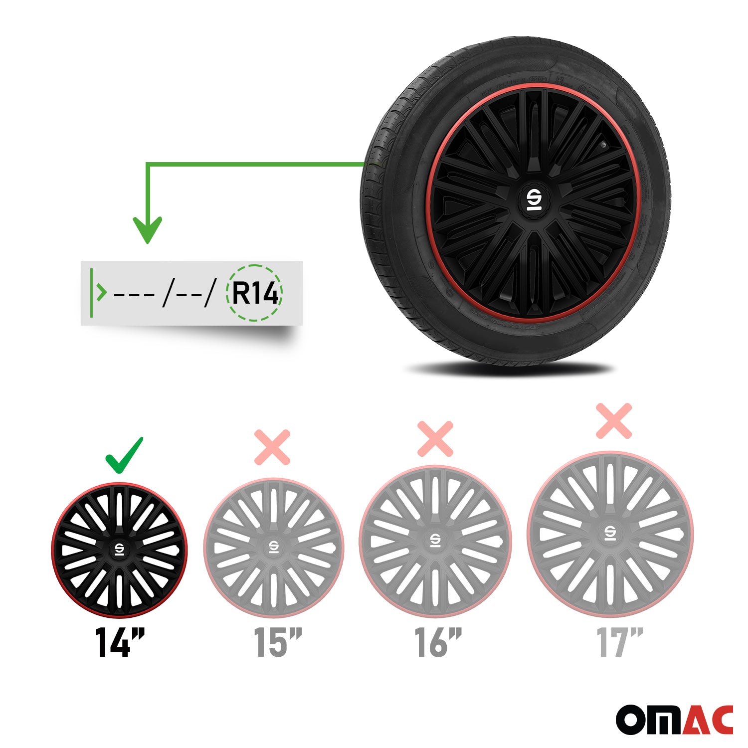 SPARCO Jeu Enjoliveurs de Roues 14 Pouces Rouge & Noir 4Pcs
