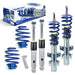 Suspension combiné fileté BlueLine Réglables Compatible av. Transporter T5 Typ 7H 2.0/ 3.2 V6/ 1.9TDi/ 2.0TDi/ BiTDi/ 2.5TDi/ 4Motion 03-15 Tuning Kit Complet - Qualité Allemande((Que pour version pour les modèles avec pinces AV jambe de force à ressorte ) Plage de réglage avant / Arriére 45-70 mm Charge maximale supportée par les essieux: Essieu avant 1710 Kg / Arriére 1720 Kg Ressorts enroulés à froid - Revêtement par poudre EPS - Amortisseurs galvanisés